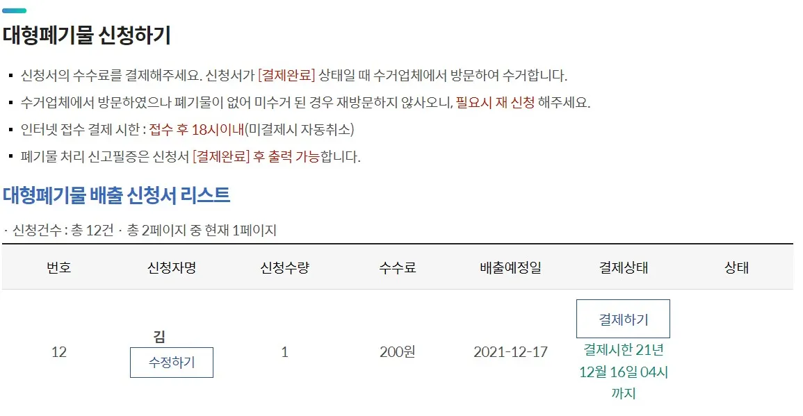 아래의 이미지의 순서대로 참고하셔서 폐기물 신청을 하시면 됩니다!!